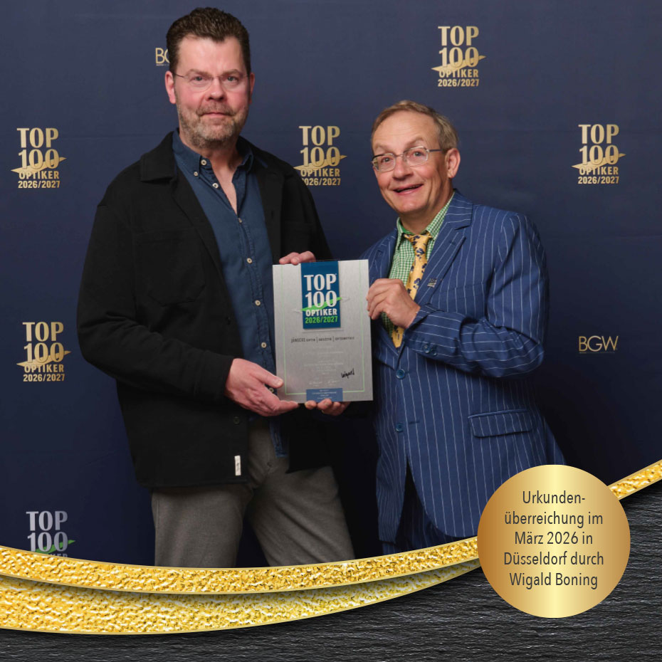 Im Frühjahr 2026 zeichnete Komiker und Fernsehmoderator Wigald Boning als Schirmherr die Gewinner des Top 100 Optiker Wettbewerbs aus.